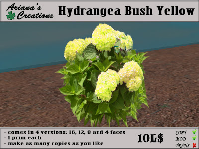 Hydrangea Bush Yellow only 10L$ at Ariana's Creation's Marketplace Shop.