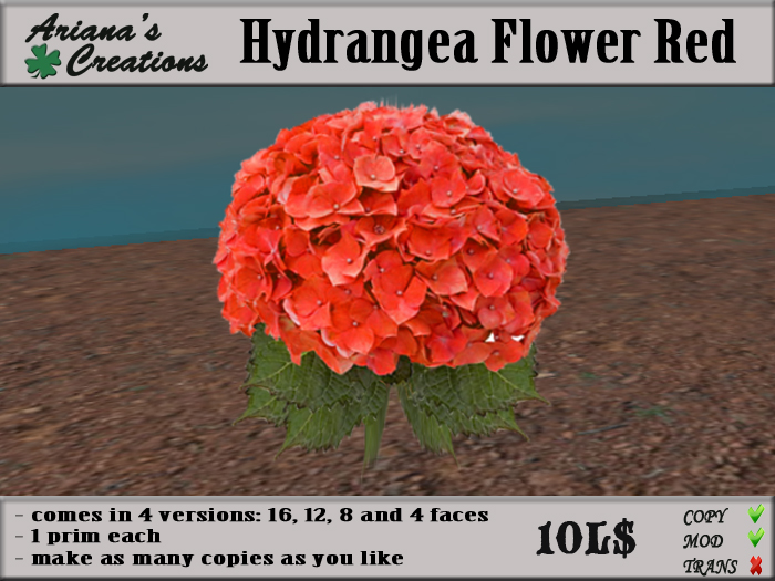 Hydrangea Flower Red only 10L$ at Ariana's Creation's Marketplace Shop.