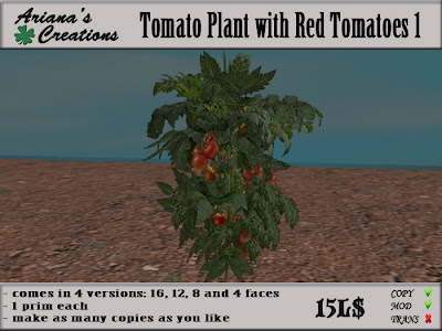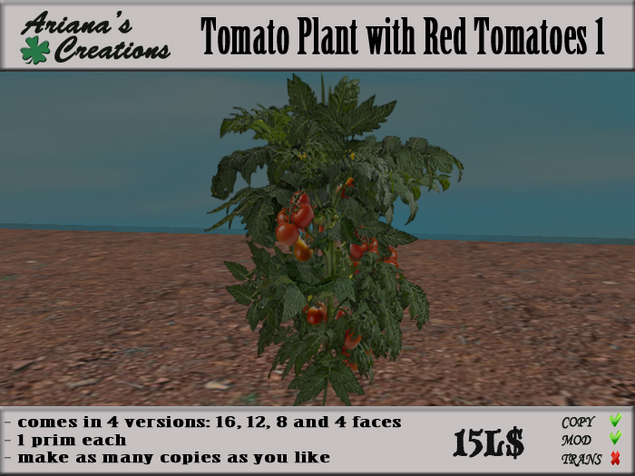 The texture set contains one tomato plant with red tomatoes in 4 variation: 4, 8, 12 and 16 sides prim plant.